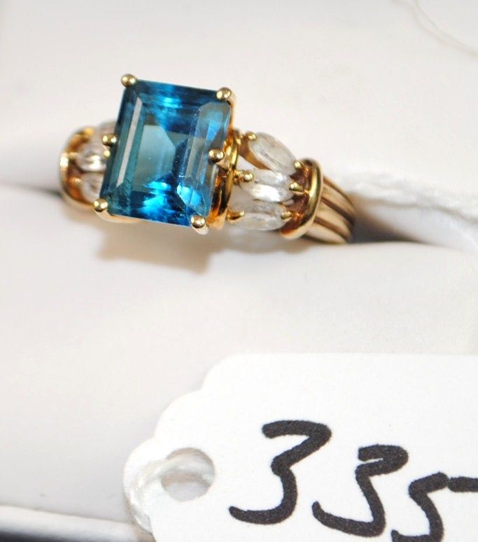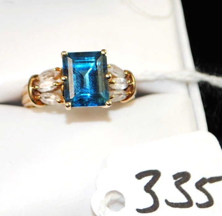 LADIES 10K YELLOW GOLD LAB CREATED BLUE TOPAZ AND CZ RING