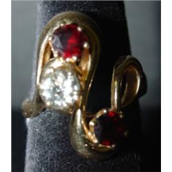 LADIES 14 KT. YELLOW GOLD DIAMOND & GARNET RING containing .5 ct. "old cut" round diamond. VS2 clarity, J color. 7.3 grams wt. CAGA appraisal.