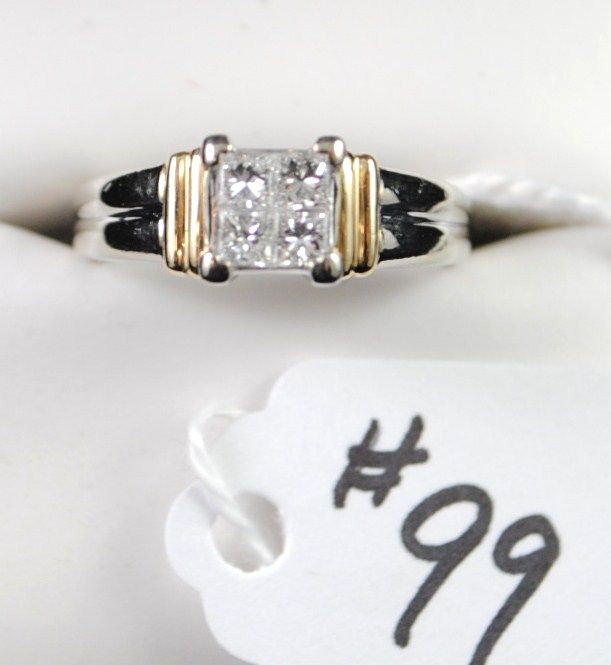 LADIES 14K TWO/TONE PRINCESS CUT DIAMOND RING WITH FOUR PRINCESS CUT DIAMONDS - WEIGHS 6.1 GRAMS