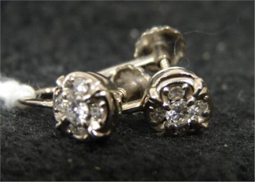 LADIES' 14K WHITE GOLD DIAMOND SCREW-BACK EARRINGS. Has approx. (2) .08 ct. round diamonds in center & (8) .01 ct. round diamonds on sides for a total wt. of approx. .24 ct. SI2 clarity & I color. 2.2 grams wt. Has CAGA appraisal.