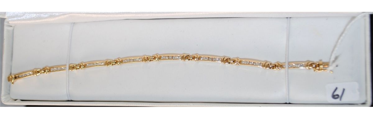 LADIES 14K YELLOW GOLD DIAMOND BRACELET WITH FORTY ROUND FULL CUT DIAMONDS (APPROX. 1.25CTTW) - APPRAISED RETAIL REPLACEMENT IS $3,600.00 - COMES WITH THE JEWELERS APPRAISAL CARD FOR INSURANCE