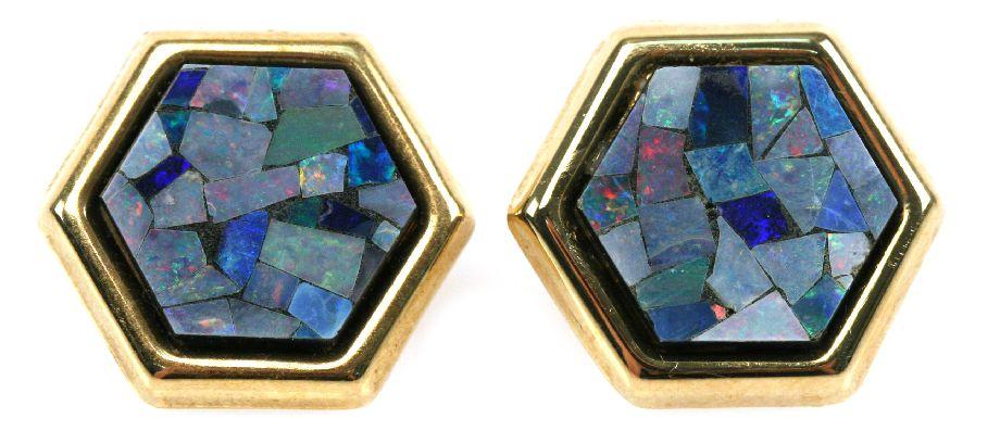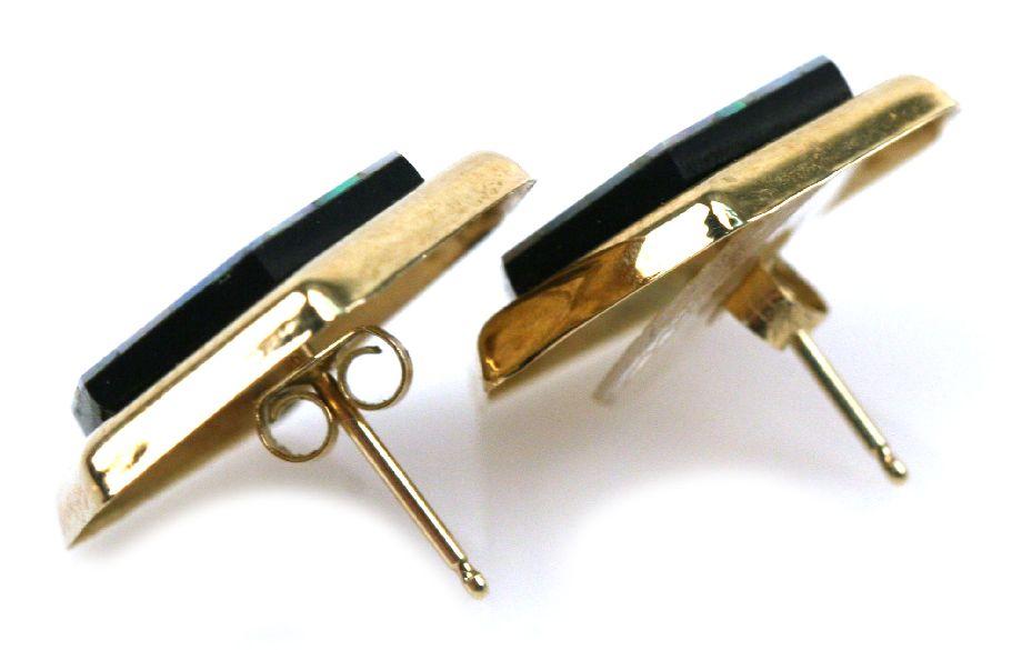 Pair of ladies post back earrings with black opal mosaic. Weight: 2.9 g Condition: Very good