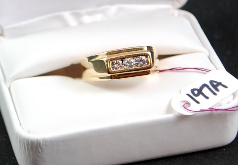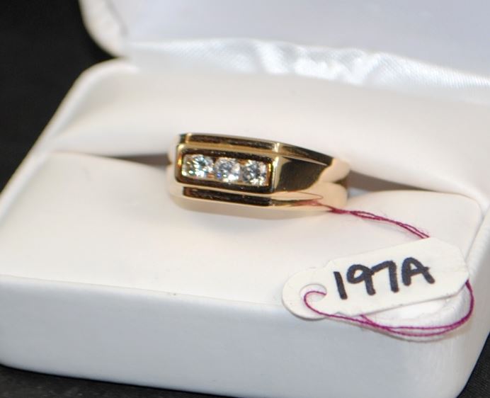 LADIES 14K YELLOW GOLD RING, 3 CHANNEL SET DIAMONDS 60CTW, VS2 CLARITY, G COLOR. THE APPRAISED REPLACEMENT COST IS $2,200.00. AND COMES WITH THE APPRAISAL FOR INSURANC3E