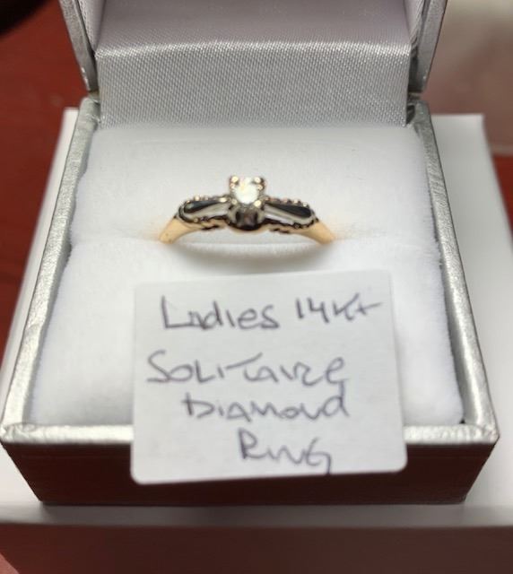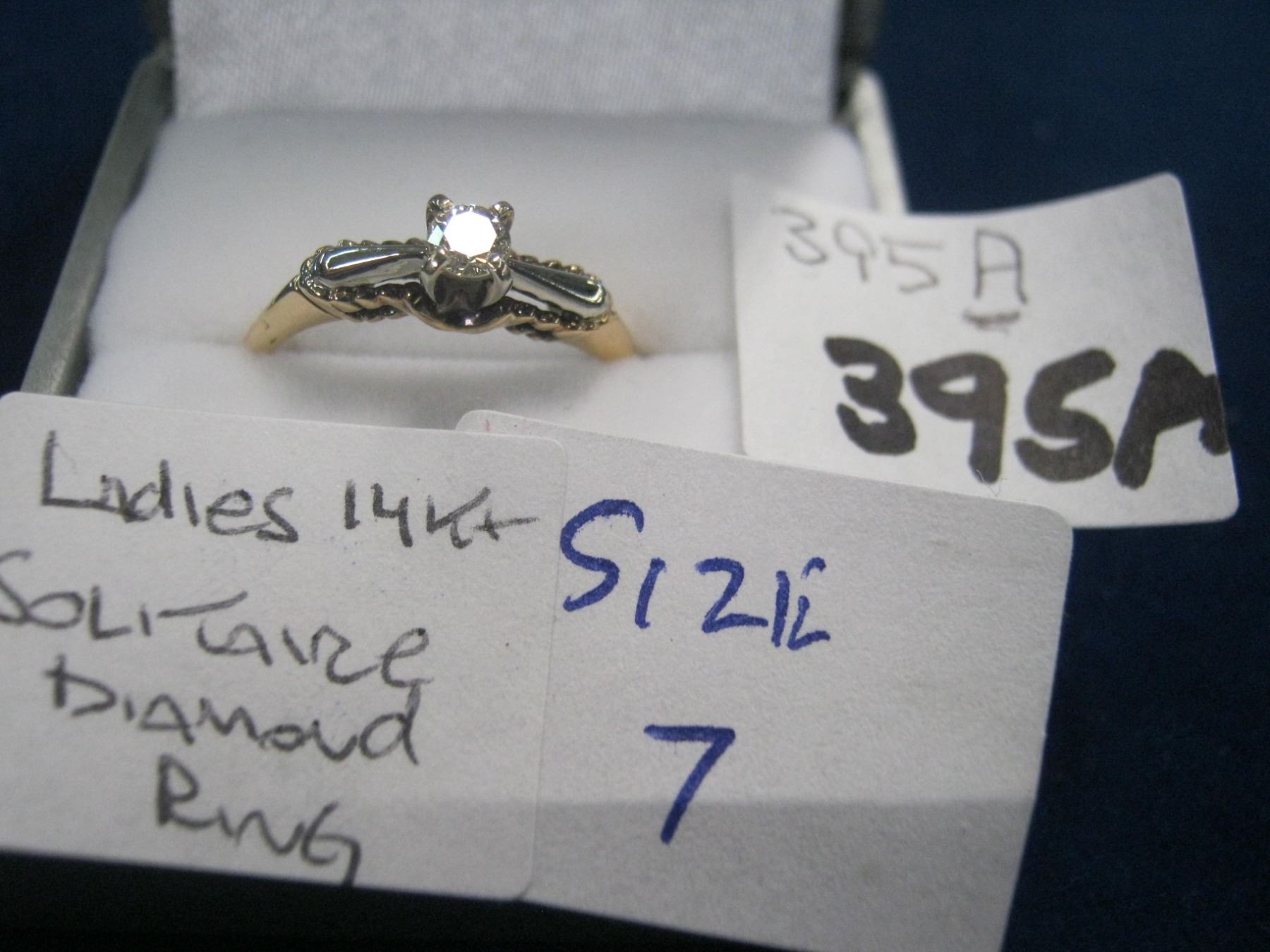 LADIES 14KT SOLITAIRE DIAMOND RING, SZ 7