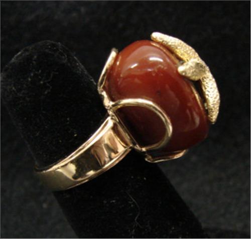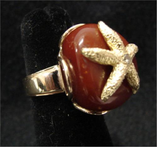 LADIES’ 14KT YELLOW GOLD & AMBER RING. Has gold starfish on amber with one 2.25mm round diamond.