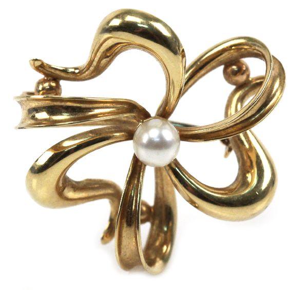 Free-form pin with a 5mm white pearl. Size: 1x1 inches Weight: 6.3 g Condition: Very good