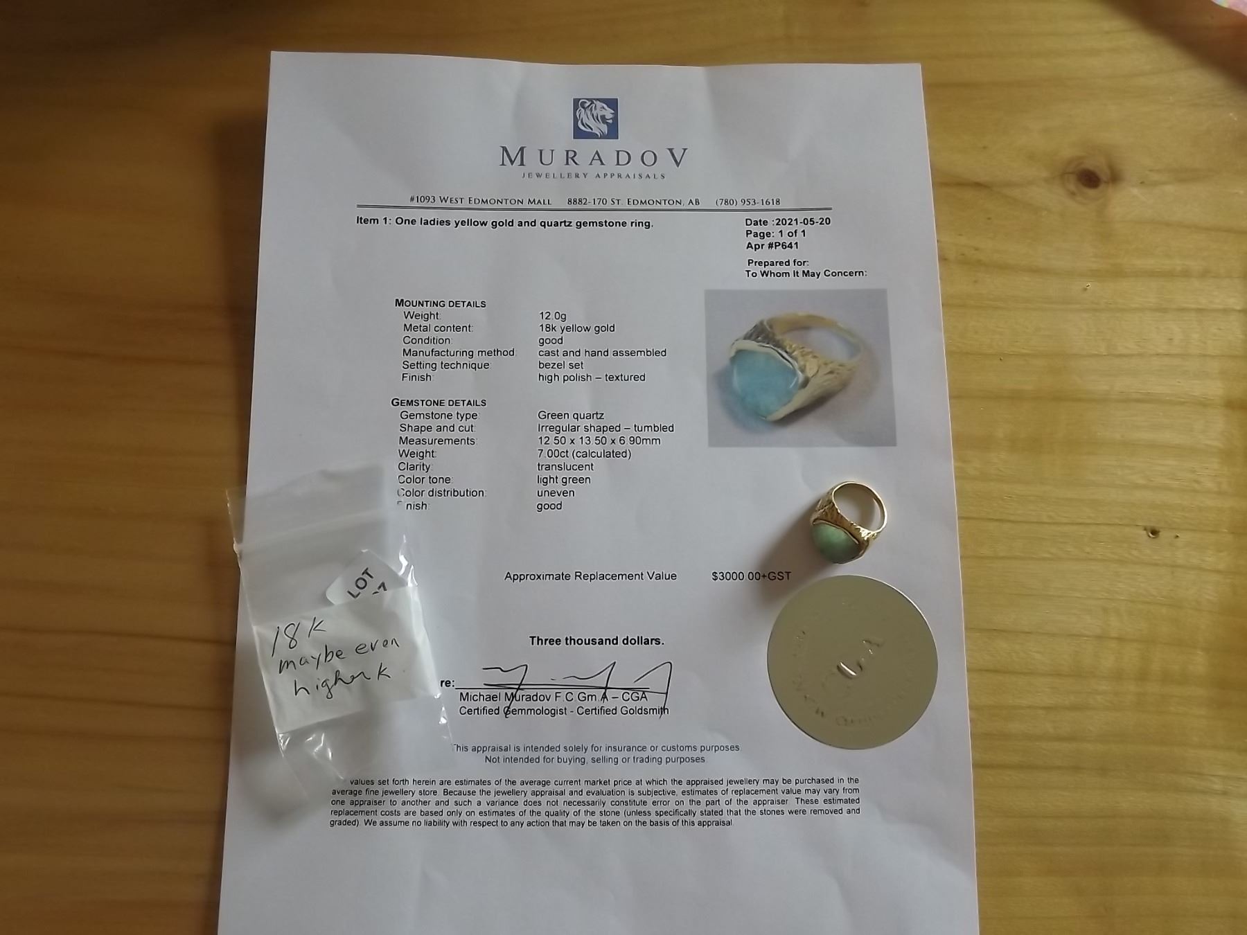 12 GRAMS 18K CAST AND HAND ASSEMBLED BEZEL SET HIGH POLISH TEXTUREDGREEN QUARTZ COMES WITHAPPRAISIAL