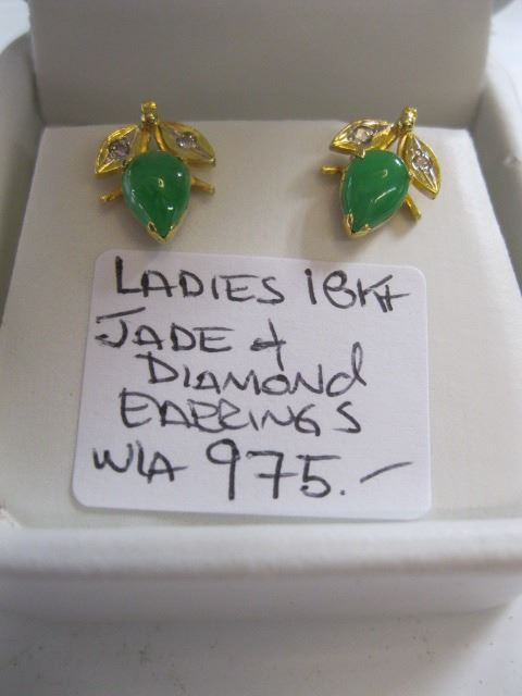 LADIES 18kt JADE & DIAMOND EARRINGS W/A - $975.