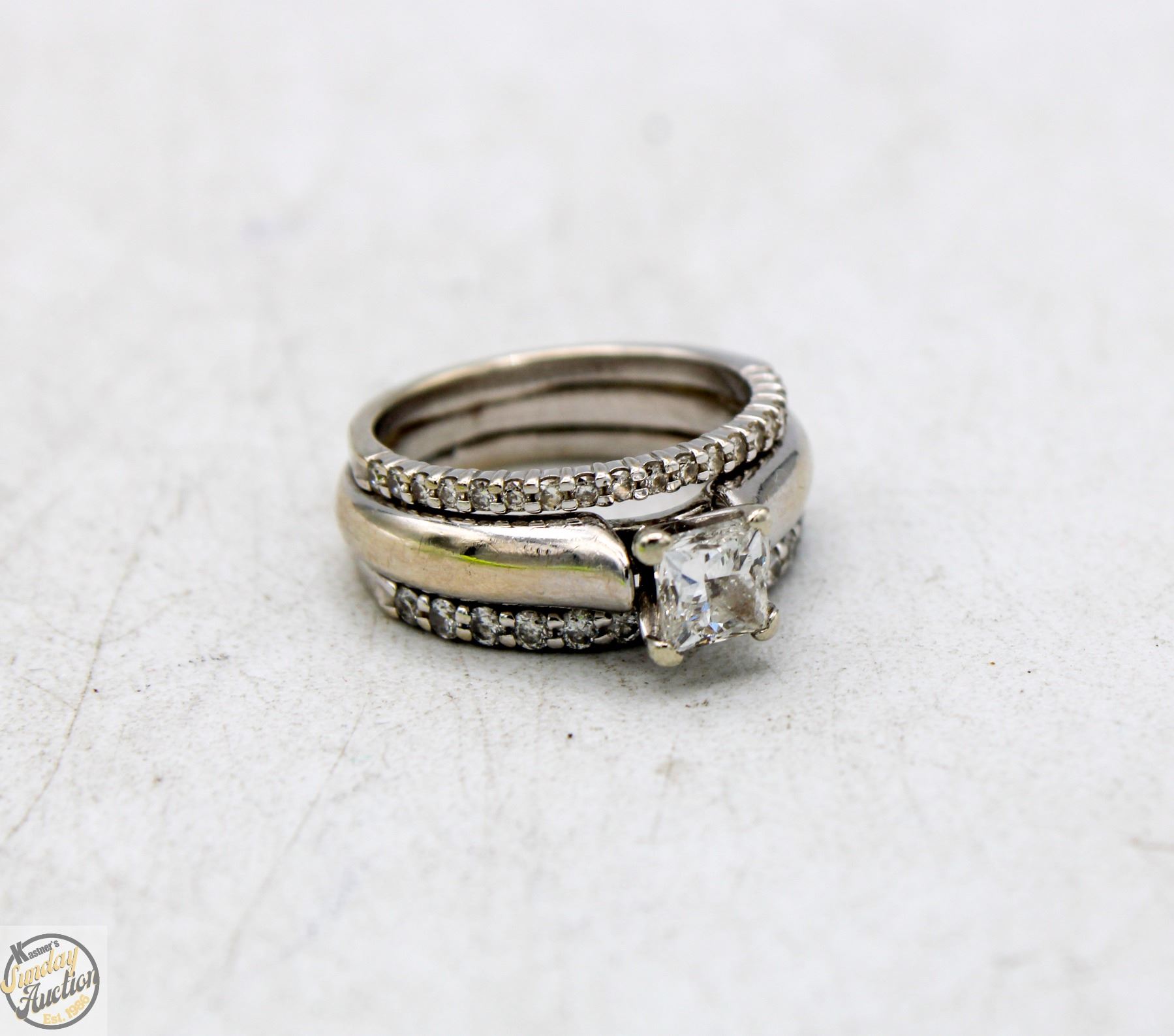 LADIES 3PC WHITE GOLD AND DIAMOND RING SET SIZE 5
