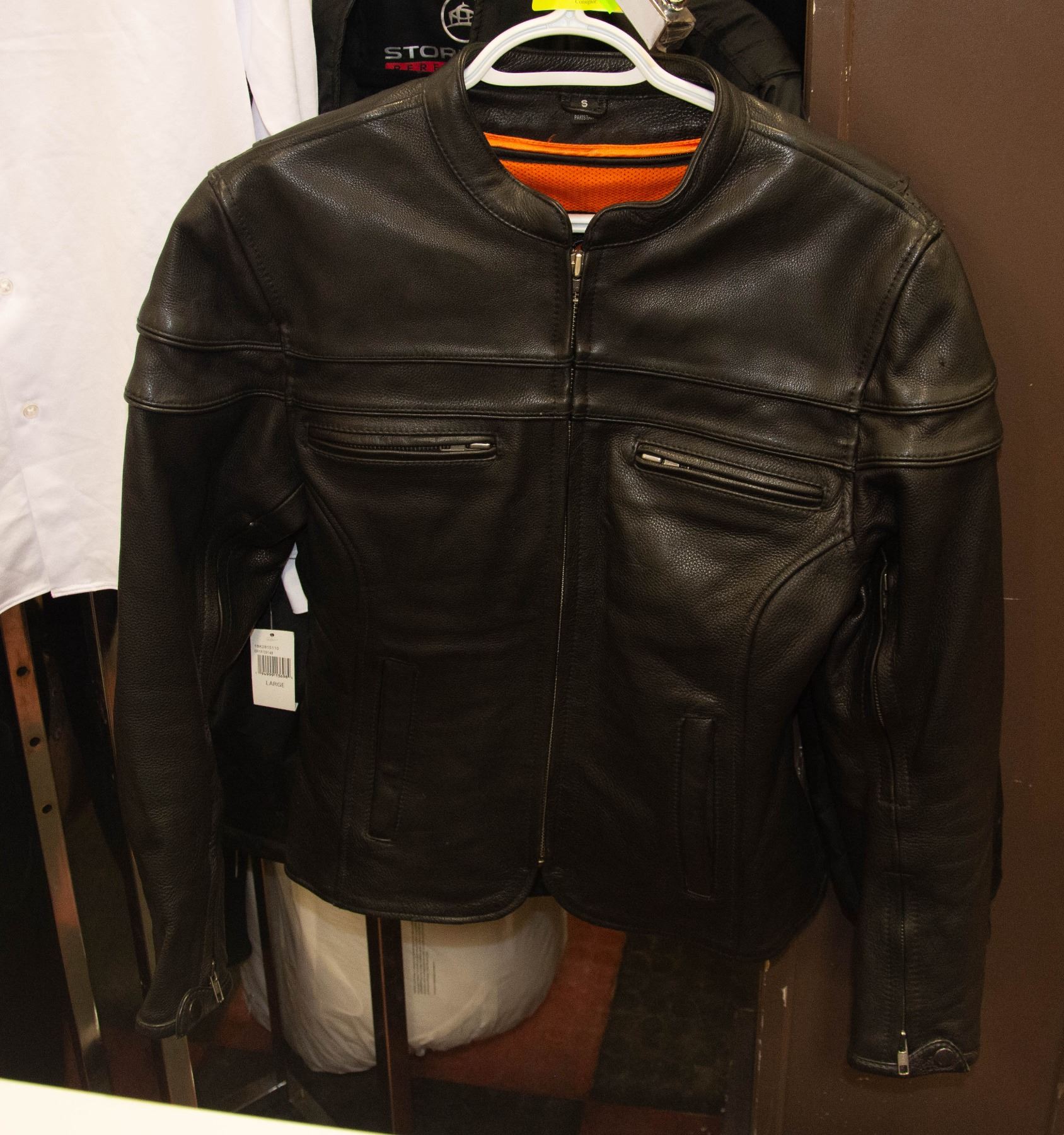 MOTORCYCLE JACKET SIZE SM WITH REMOVABLE INSIDE WEATHER LINER FIRST CLASSICS LEATHER GEAR **ALL ITEMS MUST BE REMOVED BY 5PM SATURDAY, JUNE 8TH 2024. ALL REMAINING ITEMS WILL BE SUBJECT TO A $6.00 PER DAY STORAGE CHARGE. ANY ITEMS REMAINING AFTER MONDAY, JUNE 24TH 2024 WILL BE CONSIDERED FORFEITED. NO REFUNDS WILL BE ISSUED FOR FORFEITED ITEMS. TO SCHEDULE A PICK UP APPOINTMENT CLICK HERE