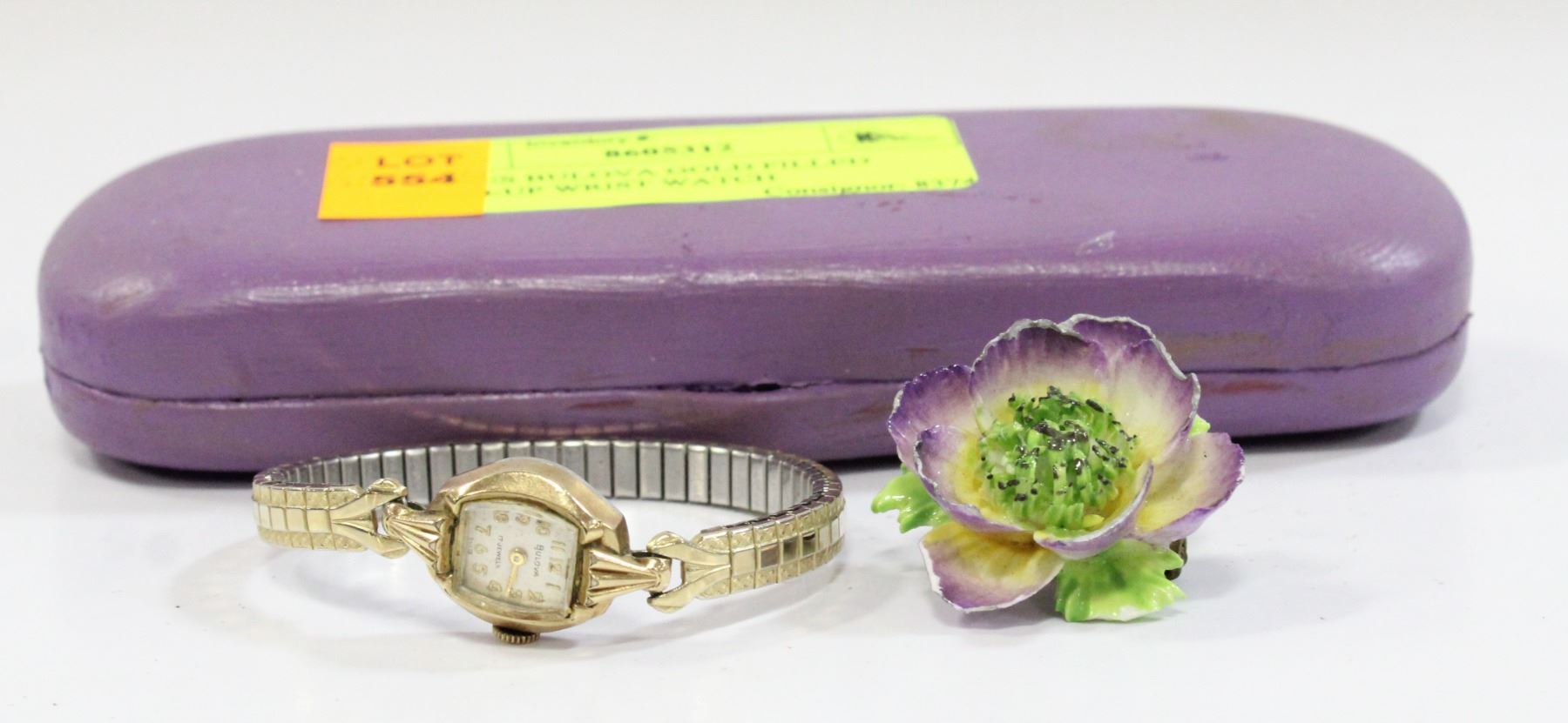 W/ GREEN/PURPLE FLOWER BROACH - WATCH WORKING