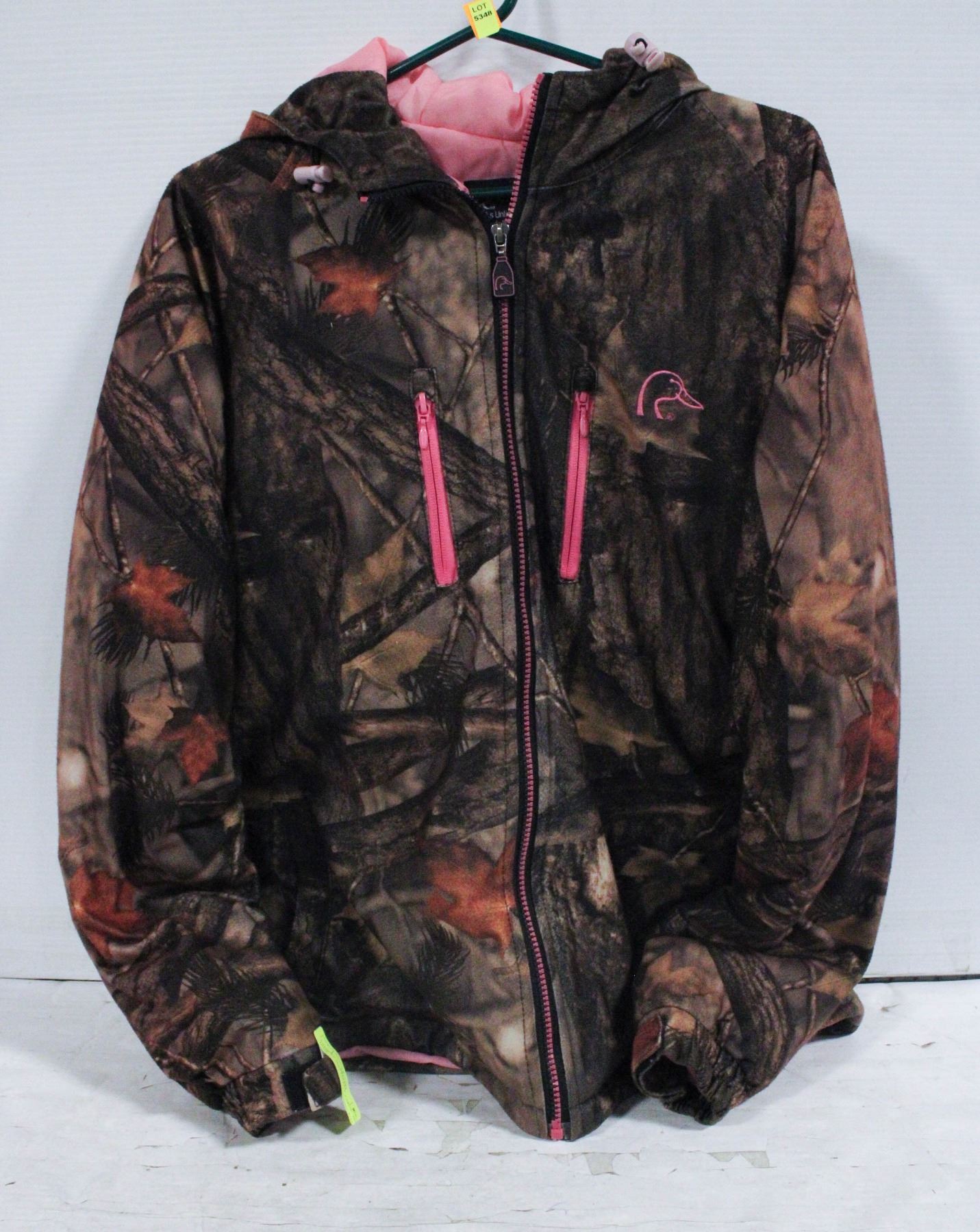 LADIES CAMO JACKET. LARGE. PINK TRIM