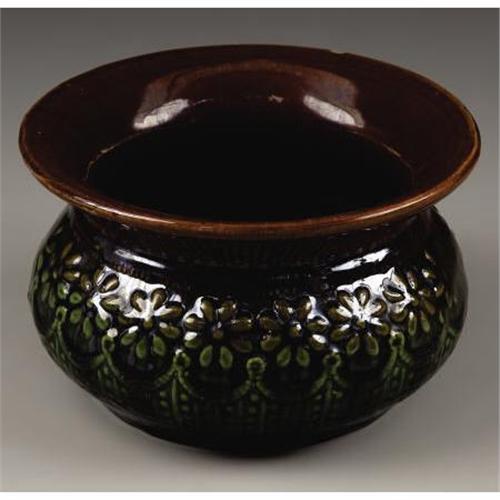 <B>LADIES CERAMIC SPITOON</B></I> - Brown with green accents; chip in rim.<BR><BR><b>Shipping:</b> Miscellaneous Collectibles, Smal (<a target="_blank" href="http://www.heritageauctions.com/common/shipping.php">view shipping information</a>)