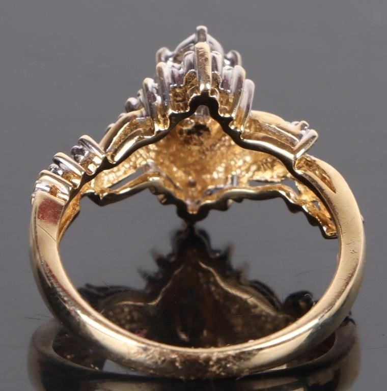 To feature 3 head stones in a marquis setting, and an intricately designed band with pave set stones.