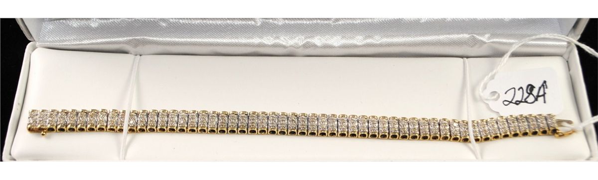 LADIES DIAMOND BRACELET WITH 106 DIAMONDS SET IN 10K YELLOW GOLD BRACELET - WEIGHS 15.8 GRAMS - APPRAISED RETAIL REPLACMENT IS $2,650.00 - COMES WITH THE JEWELERS APPRAISAL CARD FOR INSURANCE
