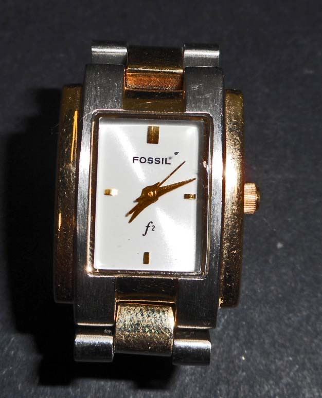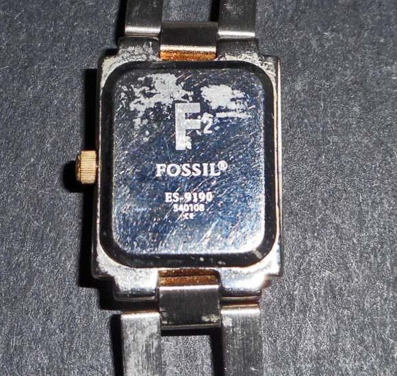 The back plate is marked 'Arkitekt Fossil FS-2699 230105 Solid Stainless Steel 50 Meters / 165 Feet Water Resistant ce'. Needs a battery.