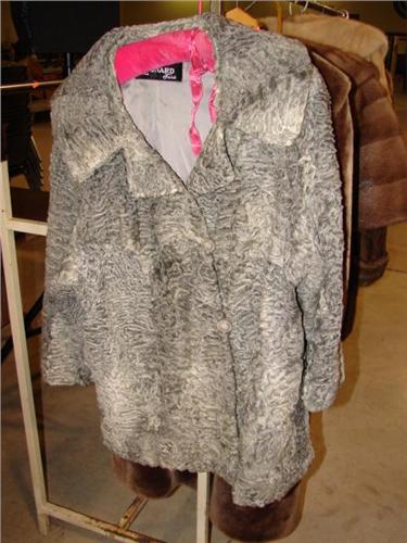LADIES' LEANORD FURS FUR COAT. Car coat length. Matted gray fur.