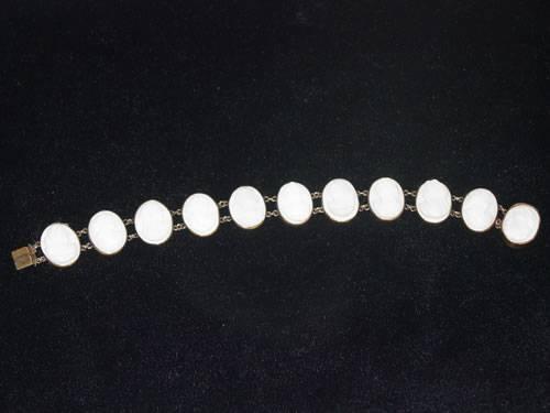LADIES GOLD FILLED CORAL CAMEO BRACELET W/ 11 LINKS;