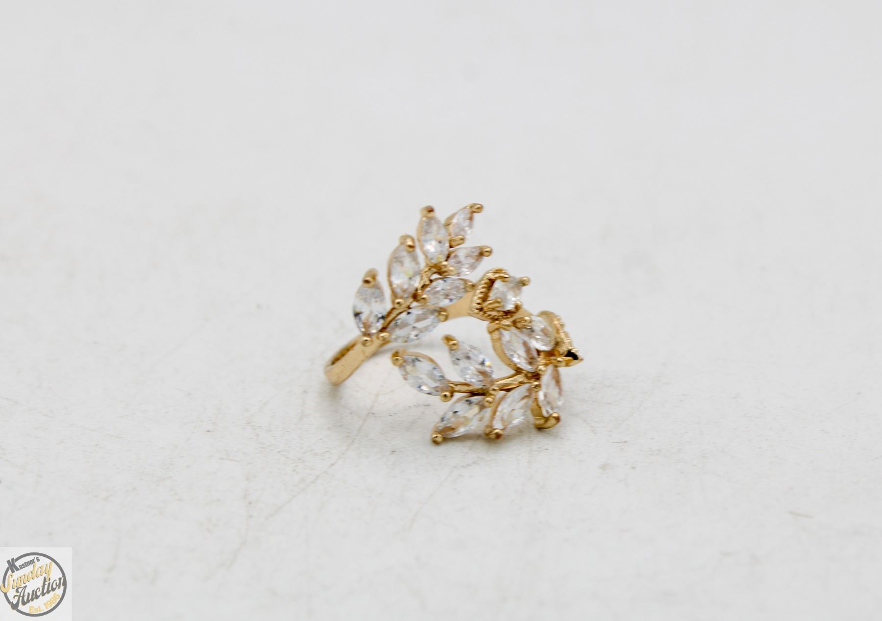 LADIES GOLD TONE JEWELED VINE/LEAF RING SIZE 8