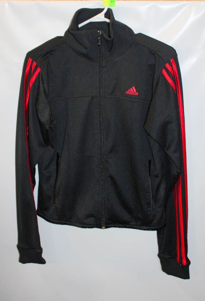 LADIES MED ADIDAS SPORT JACKET RED STRIPE