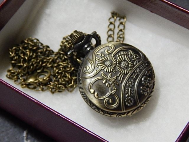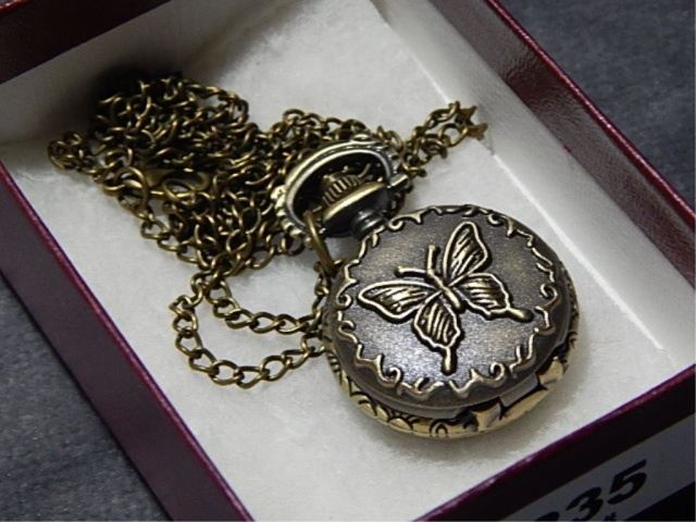 LADIES MINI POCKET WATCH - WITH CHAIN - BUTTERFLY DESIGN - WORKING
