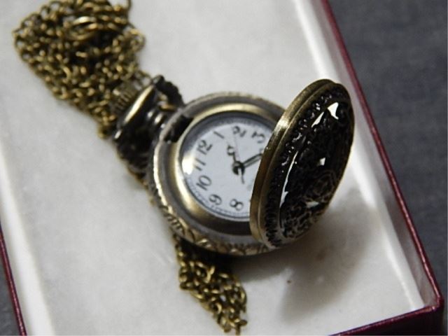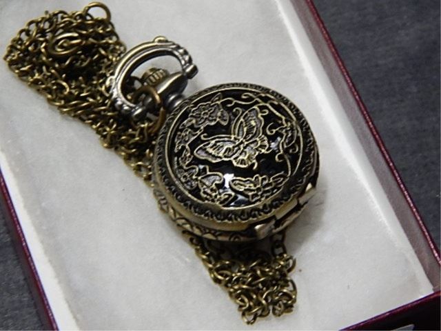 LADIES MINI POCKET WATCH - WITH CHAIN - BUTTERFLY DESIGN - WORKING