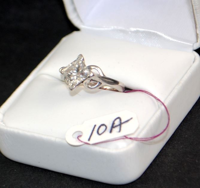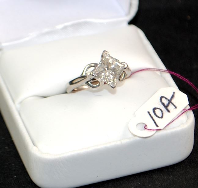 LADIES PLATINUM 2.03 CT PRINCESS CUT DIAMOND SOLITAIRE RING. THE DIAMOND IS SI1 CLARITY, H COLOR. THE APPRAISED REPLACEMENT VALUE IS $30,000.00