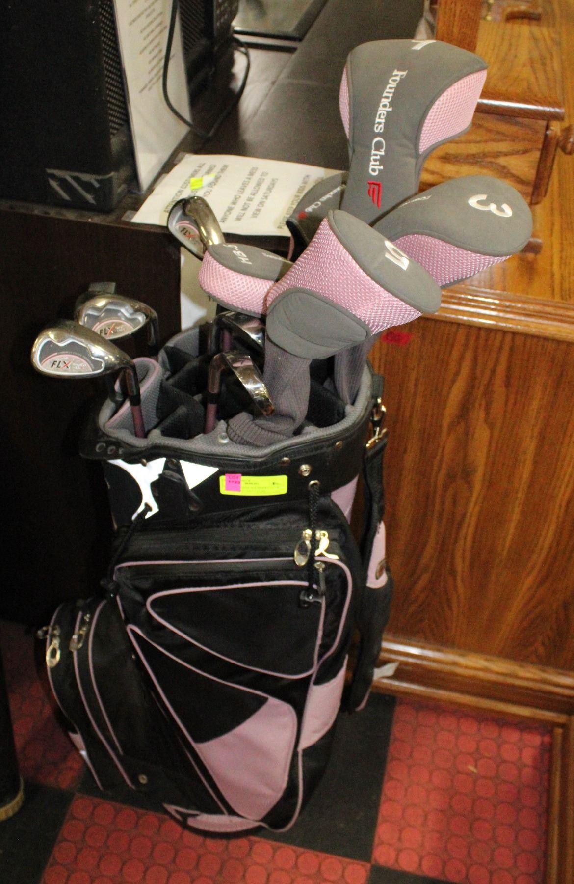 AND BAG WITH CARRY STRAP HARNESS, INCLUDES: DRIVER, 3 WOOD, 5 WOOD, HYBRIDS 4 & 5, IRONS 6,7,8,9, PITCHING WEDGE, SAND WEDGE, PUTTER - GOLIATH BLACKOUT SERIES IV, MICROFIBRE TOWEL, TEE DRAW BAG, CLUB HEAD RAINCOVER, 11 LADIES GOLF BALLS- **ALL ITEMS MUST BE REMOVED BY 5PM SATURDAY, JULY 15TH 2023. ALL REMAINING ITEMS WILL BE SUBJECT TO A $6.00 PER DAY STORAGE CHARGE. ANY ITEMS REMAINING AFTER MONDAY, JULY 31ST, 2023 WILL BE CONSIDERED FORFEITED. NO REFUNDS WILL BE ISSUED FOR FORFEITED ITEMS. TO SCHEDULE A PICK UP APPOINTMENT CLICK HERE