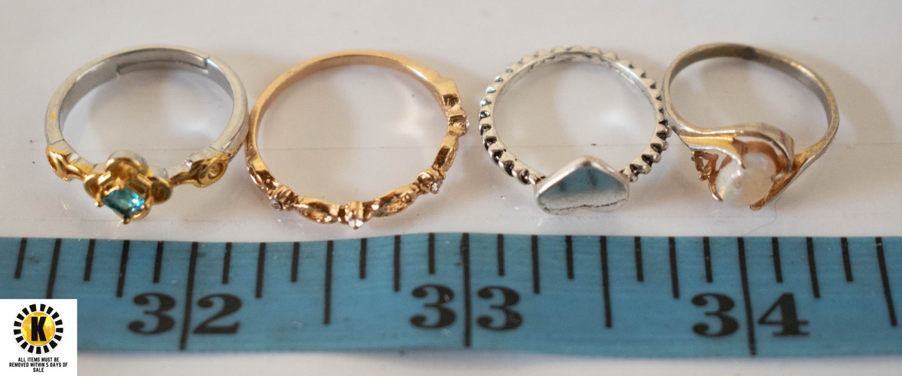 LADIES RINGS SET OF 4 RING SIZES, 5.5, 4, 3, 8