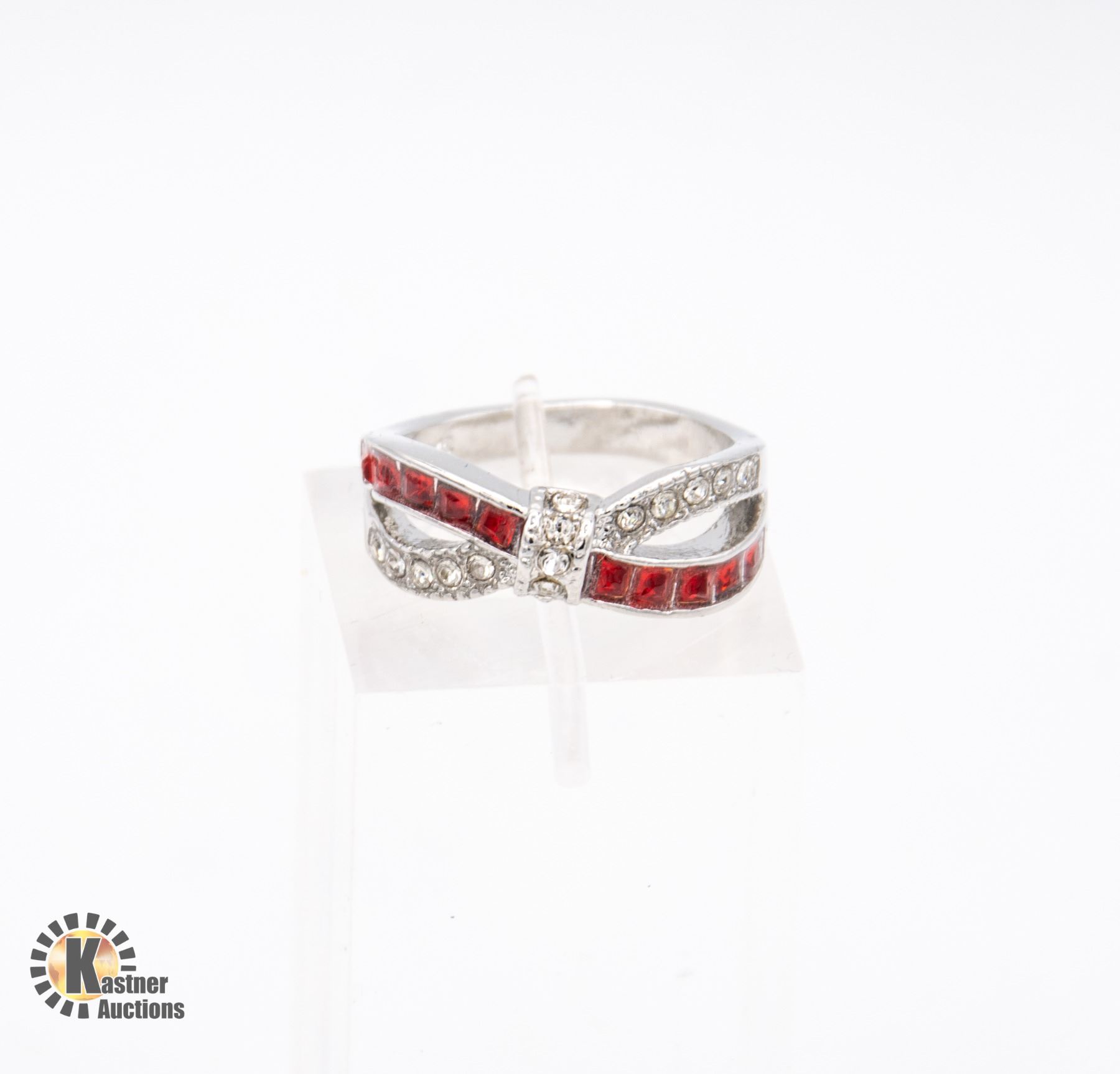 LADIES RUBY COLORED STONES WITH OPPOSING CLEAR