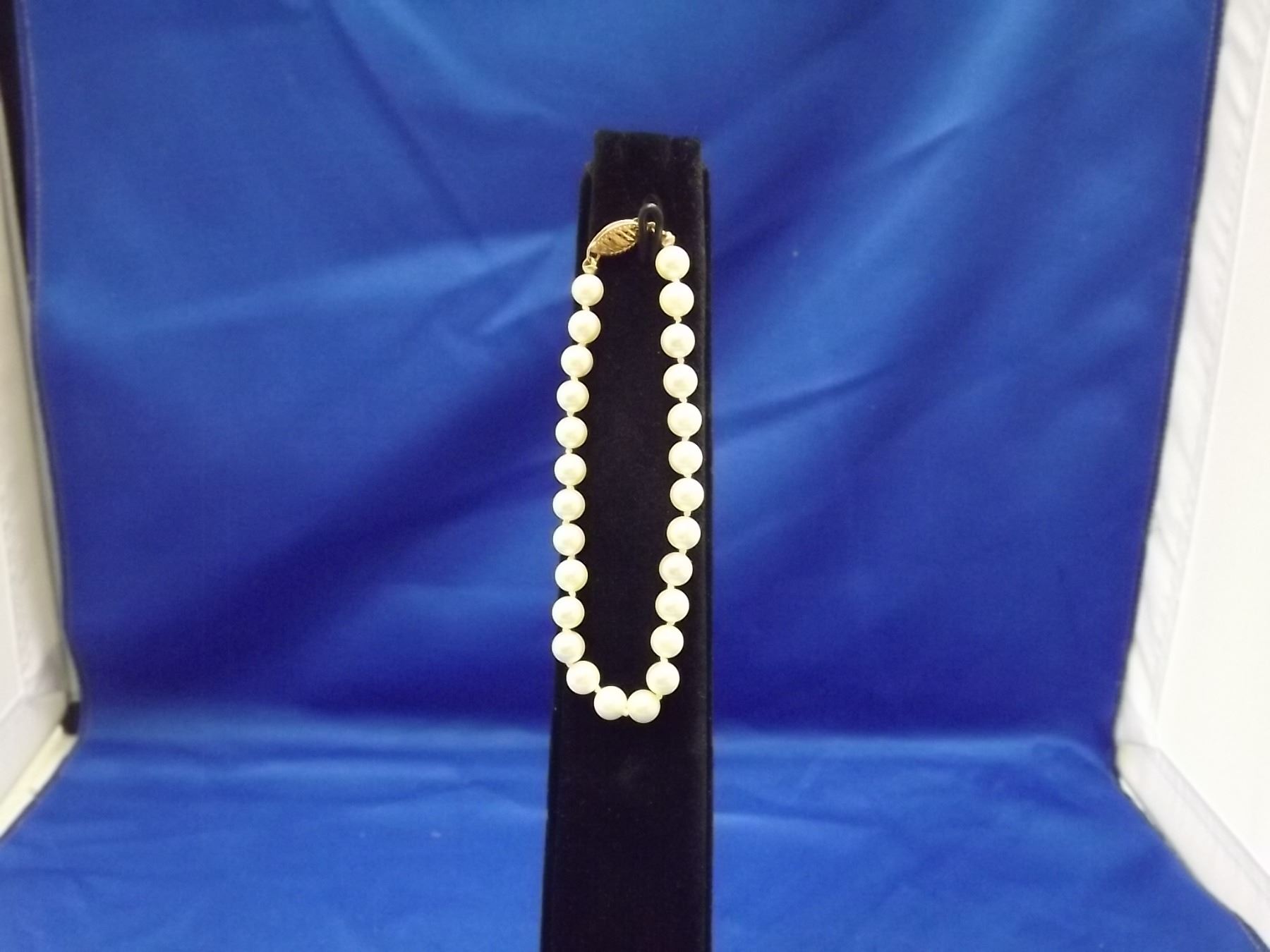 LADIES SALT WATER CULTURED PEARL BRACELET W/ 14KT GOLD