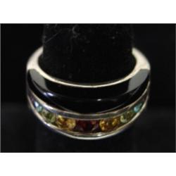Ladies' silver ring with multi-colored stones. Marked 825 silver.