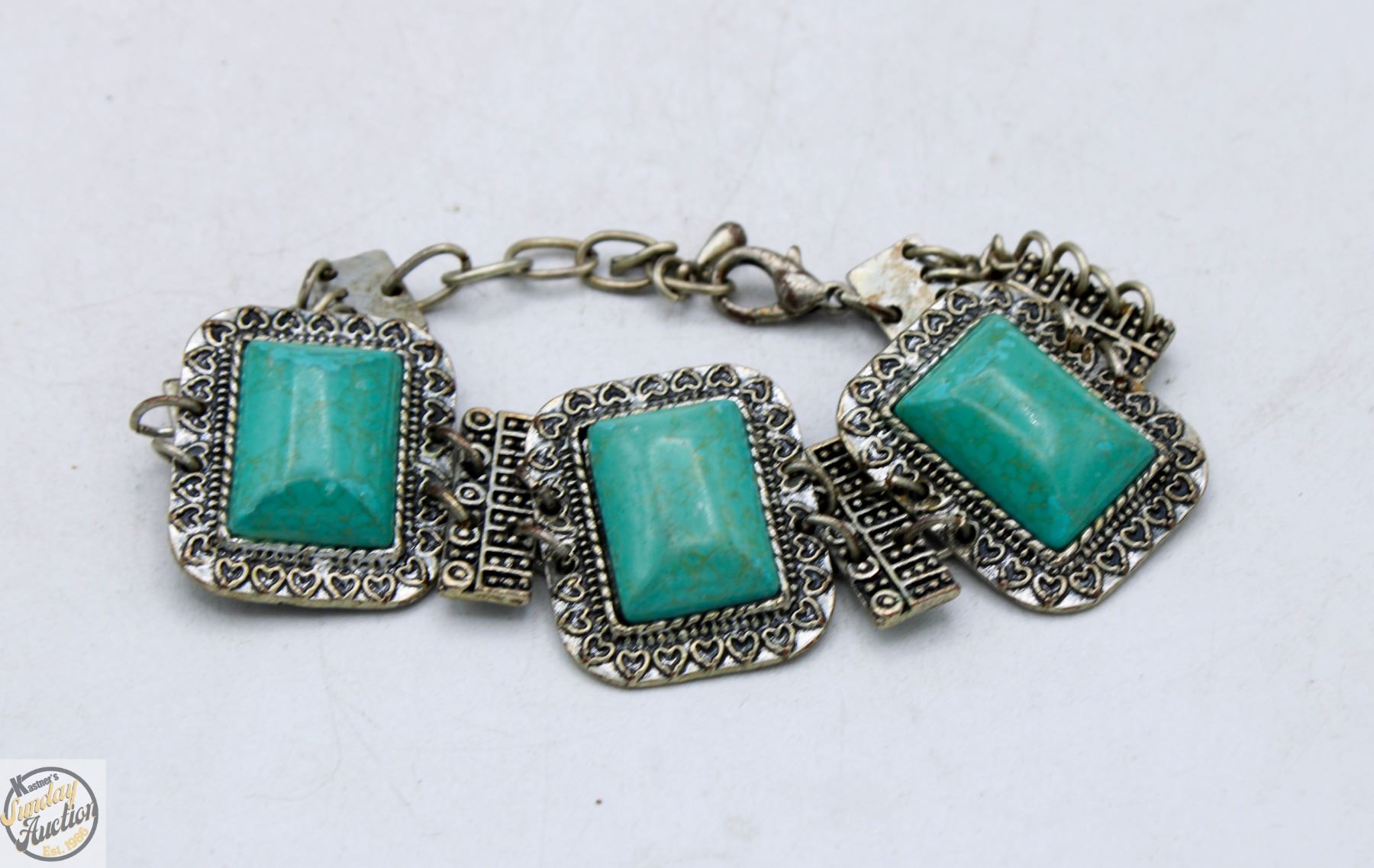 LADIES SILVER TONE AND TURQUOISE BRACELET