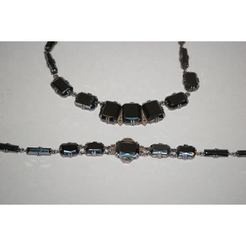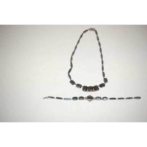 LADIES STERLING SILVER FACETED & HEMATITE BRACELET<BR>& NECKLACE SET W/ GRADUATED STONES SET IN INDIVIDUAL<BR>LINKS-7 1/2" BRACELET & 15 1/2" NECKLACE