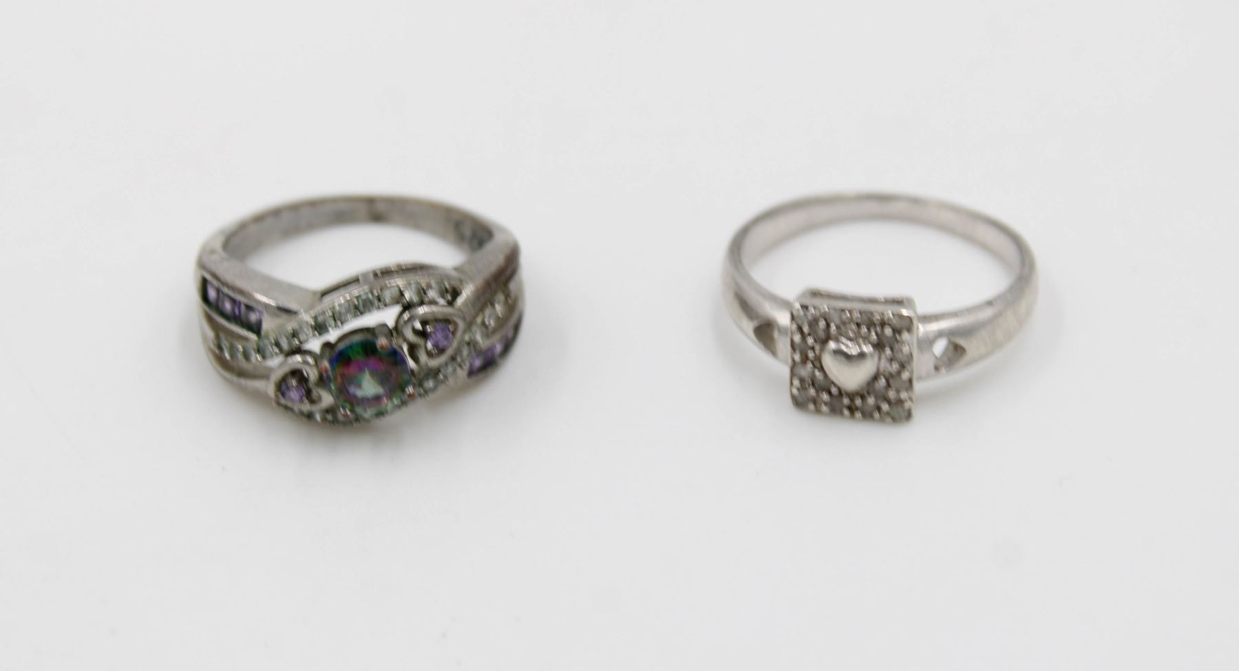 AMYTHEIST STONES PLUS OTHER SS RING SZ 6-1/4 18G