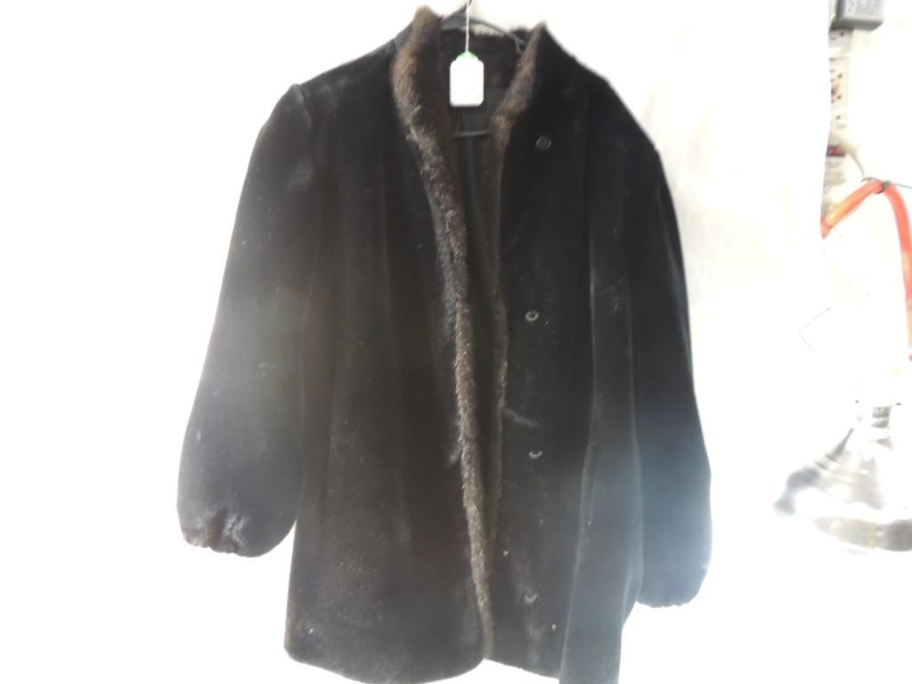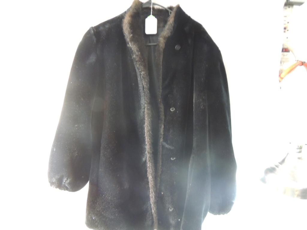 FAUX FUR AND FUR COLAR? FUR CLEAN ONLY TAG. MADE IN USA BLACK COAT DECORATIVE VINTAGE AS SHOWN SEE PHOTO FMORE DETAILS.