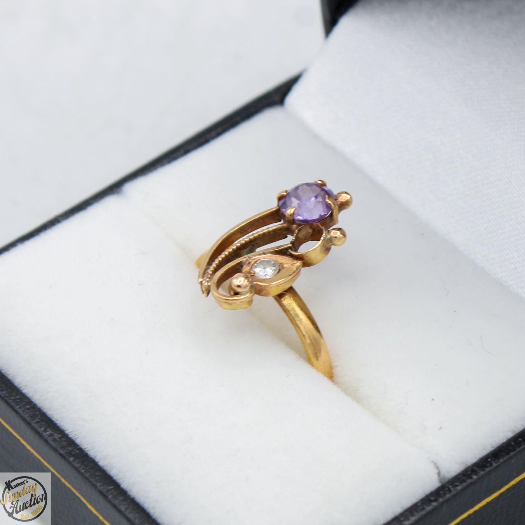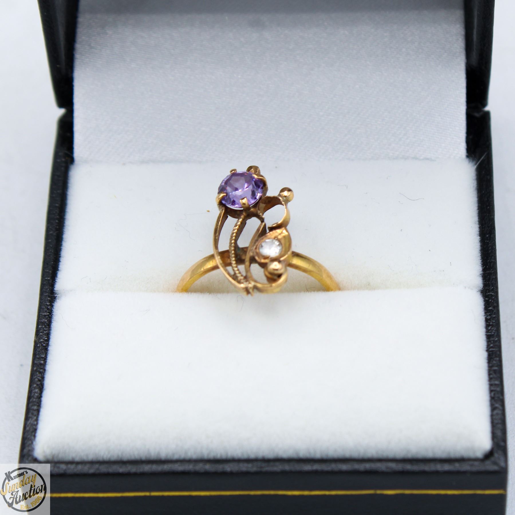 LADIES SZ 5 GOLD PLATED JEWELED RING
