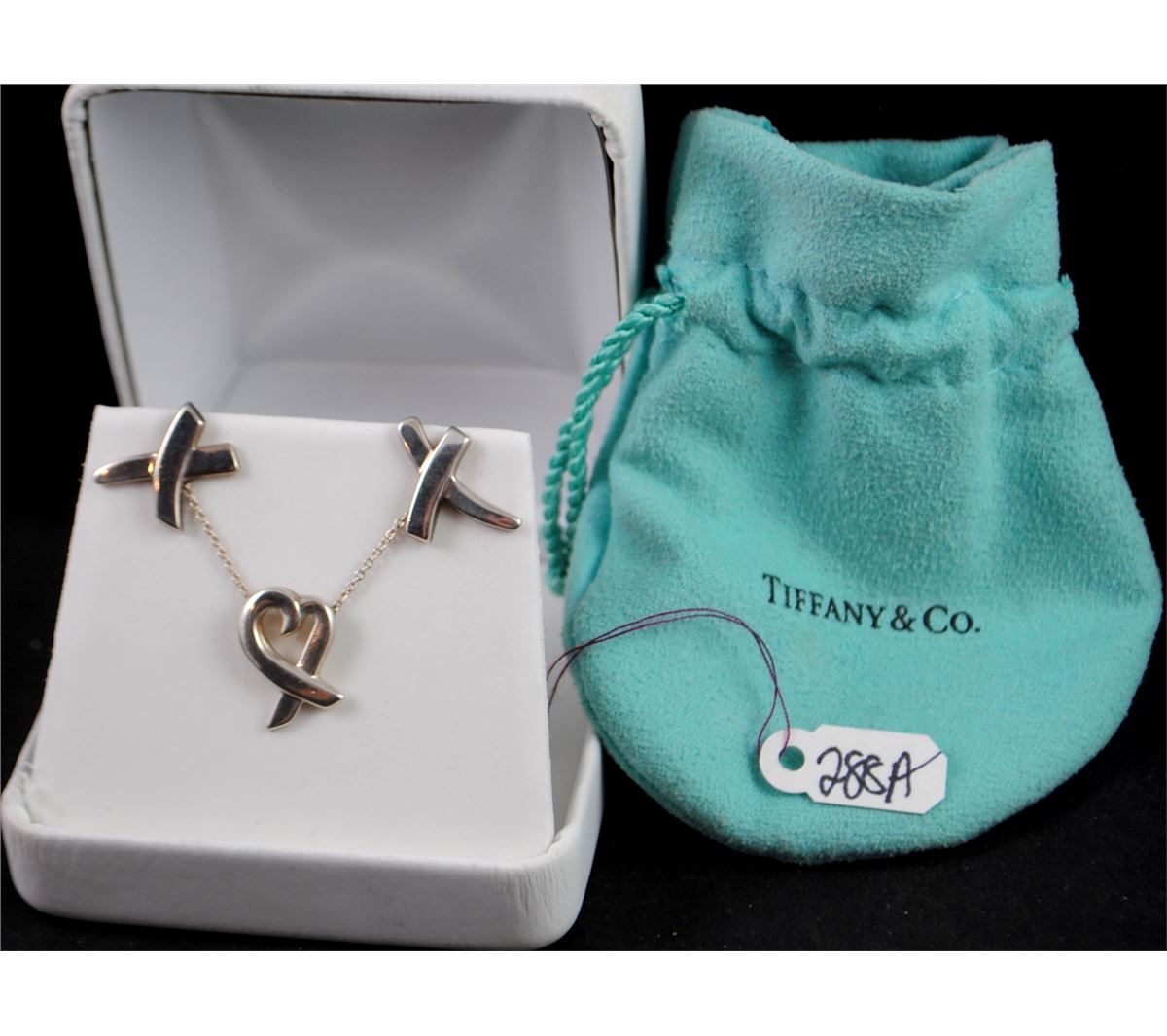 LADIES TIFFANY & CO. SILVER EARRINGS AND PENDANT, RIBBON CANCER WITH TIFFANY BAG. THE REPLACEMENT COST IS $200.00. AND COMES WITH THE APPRAISAL FOR INSURANCE PURPOSES