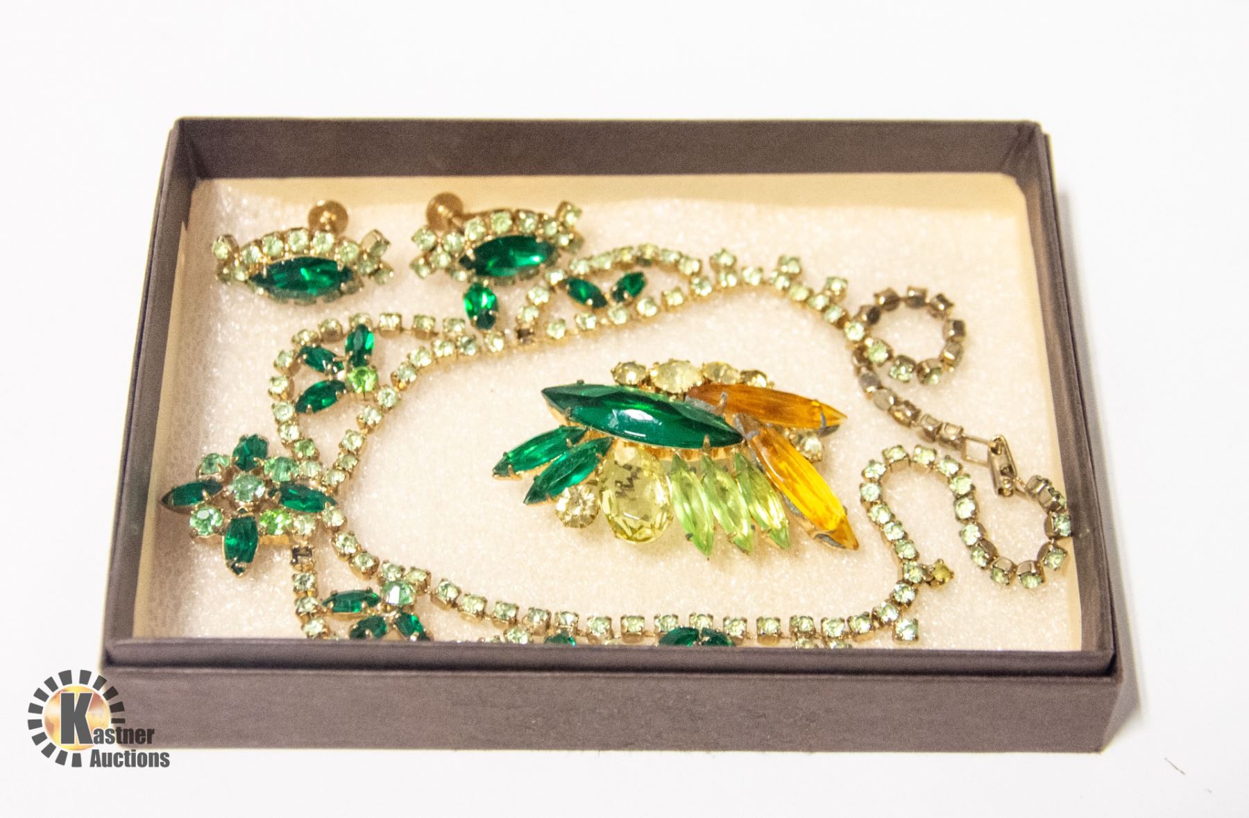 LADIES VINTAGE NECKLACE, EARRINGS, BROOCH SET