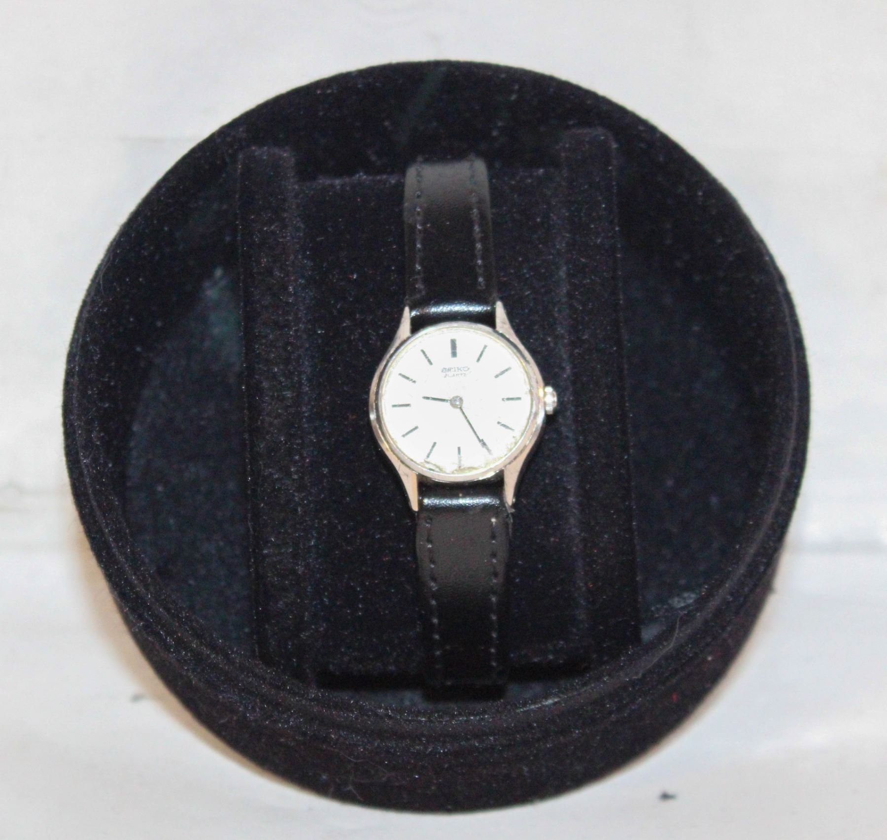 LADIES' VINTAGE SEIKO QUARTZ WATCH WITH BLACK LEAT