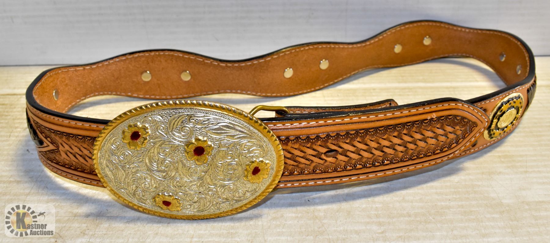 LADIES WESTERN BUCKLE & CONCH LEATHER BELT