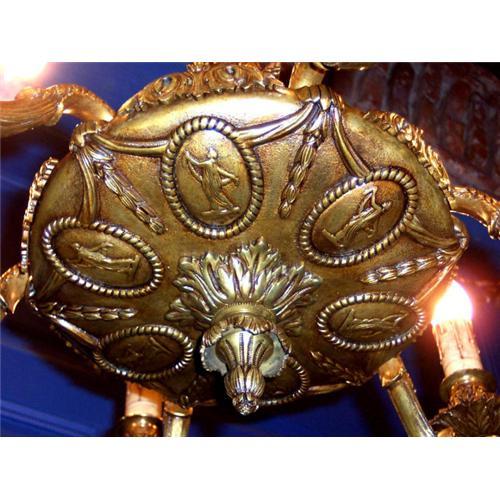 VERY NICE FRENCH CHANDELIER , LOOK YOUR SPLENDID ORNATE WITH EXQUISITE LADY CAMEO MOTIVE, IMPORTANT SIZE , REWIRED , WORK PERFECTLY TO 6 STANDARDS BULBS , RADY FOR HANG , COMPLETE WITH CHAIN AND CEILING CUP, ORIGINAL WOOD CANDLES , EXCELLENT CONDITION , LET ME KNOW IF YOU NEED MORE INFORMATION.