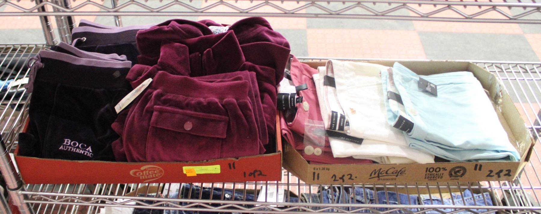 2PCS, M PURPLE VELVET ZIP TOP S, POCKET PANT M PCS, PURPLE VELVET HOODIE TOP S POCKET PANT M 2PCS, THE LIMITED STRETCH COTTON FLARE PANTS DREW FIT SZ 8 AQUA/WHITE/RED 3PCS 17PCS TOTAL **ALL ITEMS MUST BE REMOVED BY 5PM SATURDAY, FEBRUARY 8TH 2025. ALL REMAINING ITEMS WILL BE SUBJECT TO A $6.00 PER DAY STORAGE CHARGE. ANY ITEMS REMAINING AFTER MONDAY, MARCH 3RD 2025 WILL BE CONSIDERED FORFEITED. NO REFUNDS WILL BE ISSUED FOR FORFEITED ITEMS. TO SCHEDULE A PICK UP APPOINTMENT CLICK HERE
