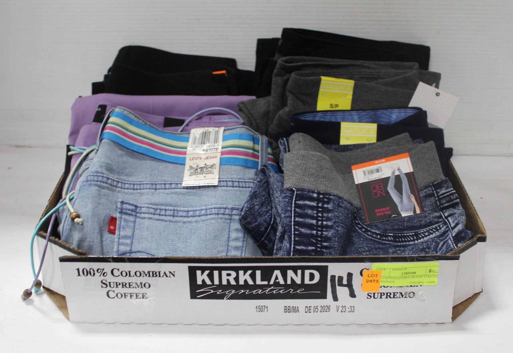 M 2 BLK, 1 BLUE, CAPRI MAUVE COTTON STRETCH SZ 8, LEVIS CAPRI DENIM SZ 8, PANTS VAN HUESEN BLK COTTON STRETCH DENIM SZ 10, DANSKIN CAPRI NAVY 2PC SZ S 7PIECES **ALL ITEMS MUST BE REMOVED BY 5PM SATURDAY, FEBRUARY 8TH 2025. ALL REMAINING ITEMS WILL BE SUBJECT TO A $6.00 PER DAY STORAGE CHARGE. ANY ITEMS REMAINING AFTER MONDAY, MARCH 3RD 2025 WILL BE CONSIDERED FORFEITED. NO REFUNDS WILL BE ISSUED FOR FORFEITED ITEMS. TO SCHEDULE A PICK UP APPOINTMENT CLICK HERE