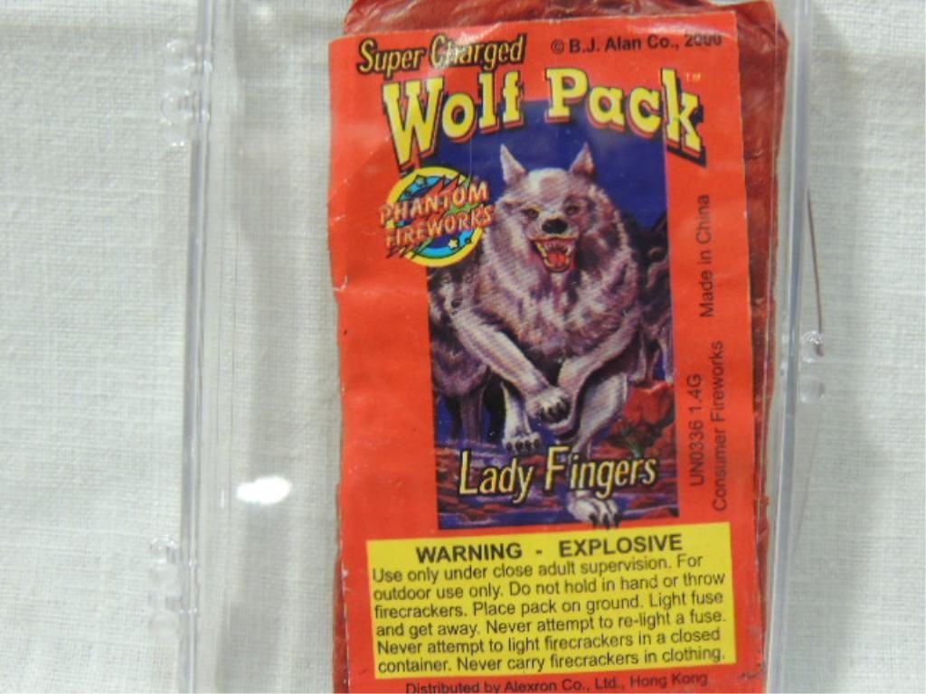 SUPER CHARGED WOLF PACK LADY FINGERS FIREWORKS. AS SHOWN. SEE PICTURE FOR DETAILS.