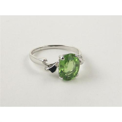 RING: 14k white gold lady's ring set with a peridot. The periot measures approximately 4.25ct. No appraisal is included with this lot.