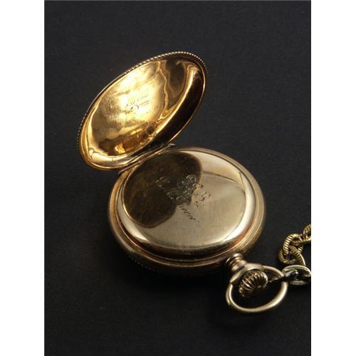 POCKETWATCH: Delicate lady's American Waltham Watch Co. 15 jewel pocketwatch dating from 1891. It is inscribed inside the case ''FAS to E.M. Sherer'' and decorated on the outside with flowers, leaves and a house. No appraisal is included with this lot.