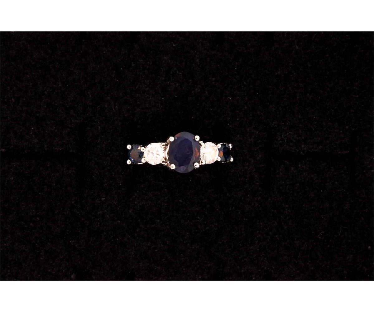 LADYS 14KW RING WITH DIAMONDS AND SAPPHIRES, SIZE 6