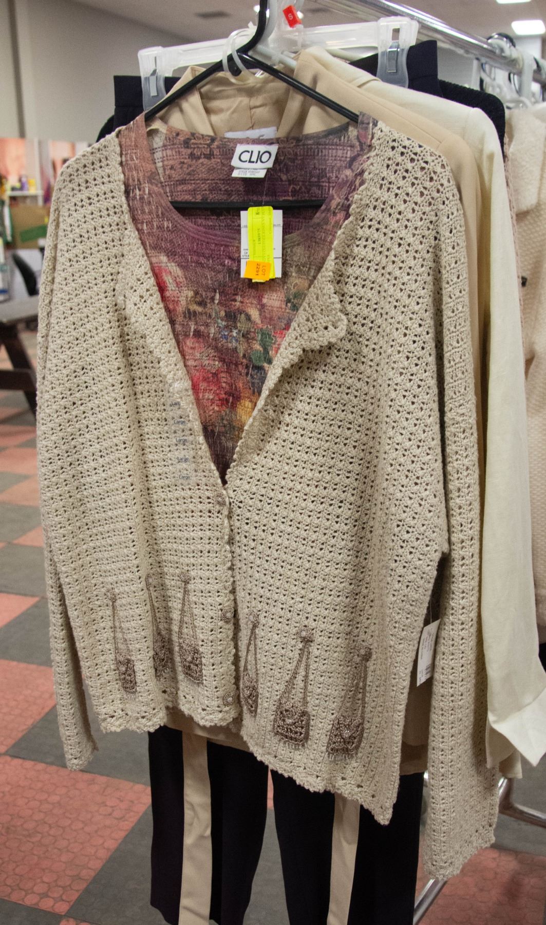 SWEATER M, PURPLE PANTS SIZE 8 CLIO PURPLE STRETCH TOP & MANDEL BAY CROCHET SWEATER L, JACKET CREAM VILLAGER SIZE 10P, PURSUITS JACKET SIZE 6, INITIATIONS KNIT BEIGE SWEATER L, LIZ CALICORNE BLK/WHITE SWEATER M 8 PCS **ALL ITEMS MUST BE REMOVED BY 5PM SATURDAY, FEBRUARY 8TH 2025. ALL REMAINING ITEMS WILL BE SUBJECT TO A $6.00 PER DAY STORAGE CHARGE. ANY ITEMS REMAINING AFTER MONDAY, MARCH 3RD 2025 WILL BE CONSIDERED FORFEITED. NO REFUNDS WILL BE ISSUED FOR FORFEITED ITEMS. TO SCHEDULE A PICK UP APPOINTMENT CLICK HERE