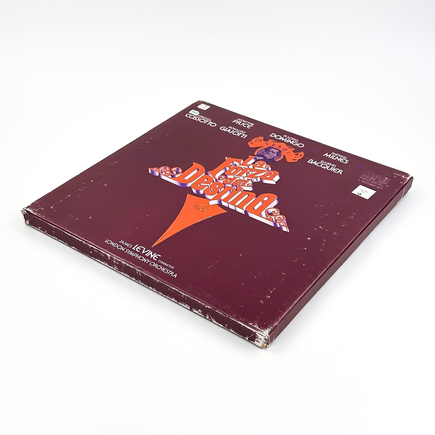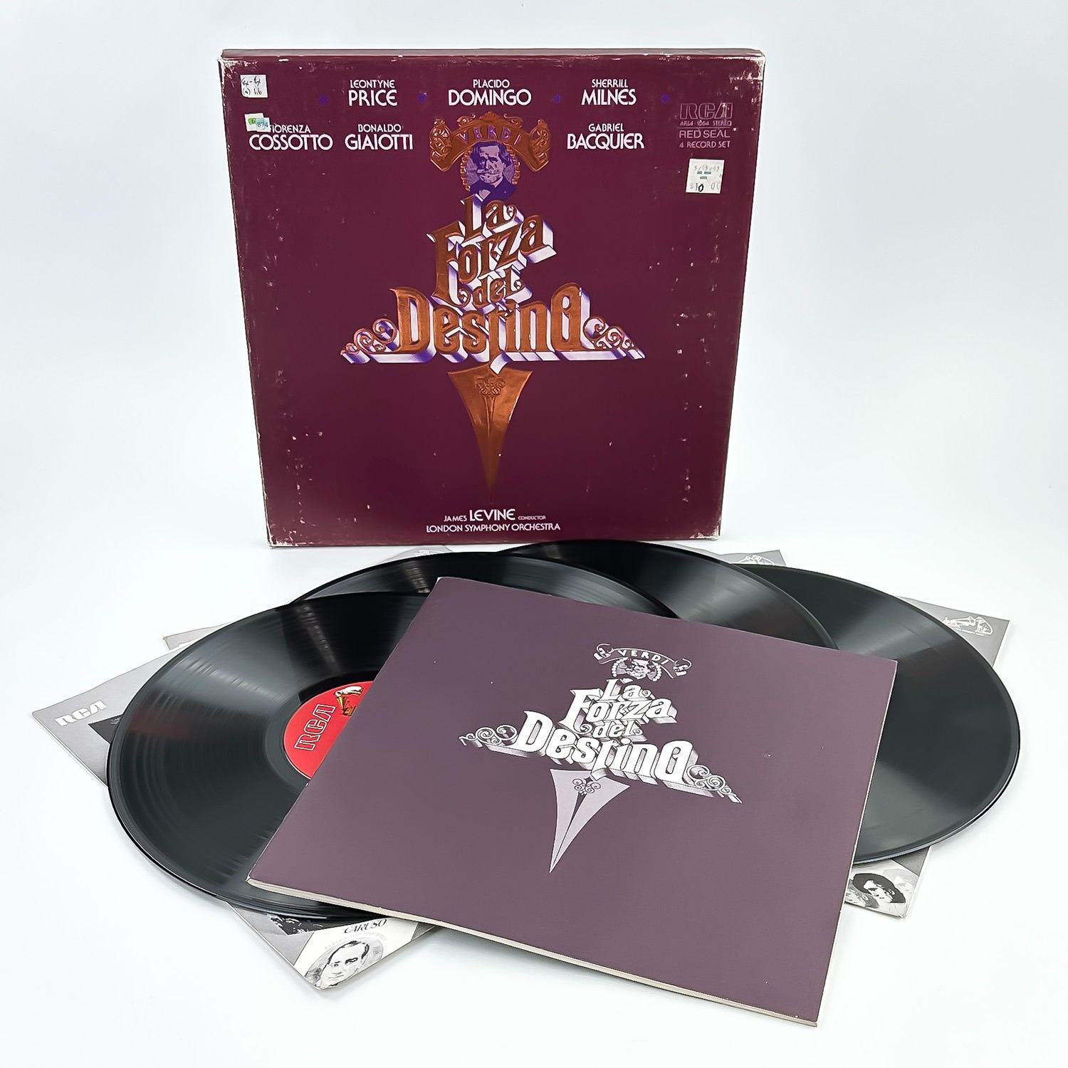 #9578 - 4X VINYL LP RECORD ALBUM BOXED SET & 32 PAGE INFORMATIONAL BOOKLET - CLASSICAL, OPERA, ROMANTIC. LA FORZA DEL DESRTINA - LEONTYNE PRICE, PLACIDO DOMINGO, SHERRILL MILNES, FIORENZA COSSOTTO, BONALDO GIAIOTTI, GARBRIEL BACQUIER. JAMES LEVINE CONDUCTOR - LONDON SYMPHONY ORCHESTRA. RCA RED SEAL RECORDS ARL4-1864. RECORD ALBUM FROM PRIVATE COLLECTION OF CLASSICAL/OPERA RECORDS.